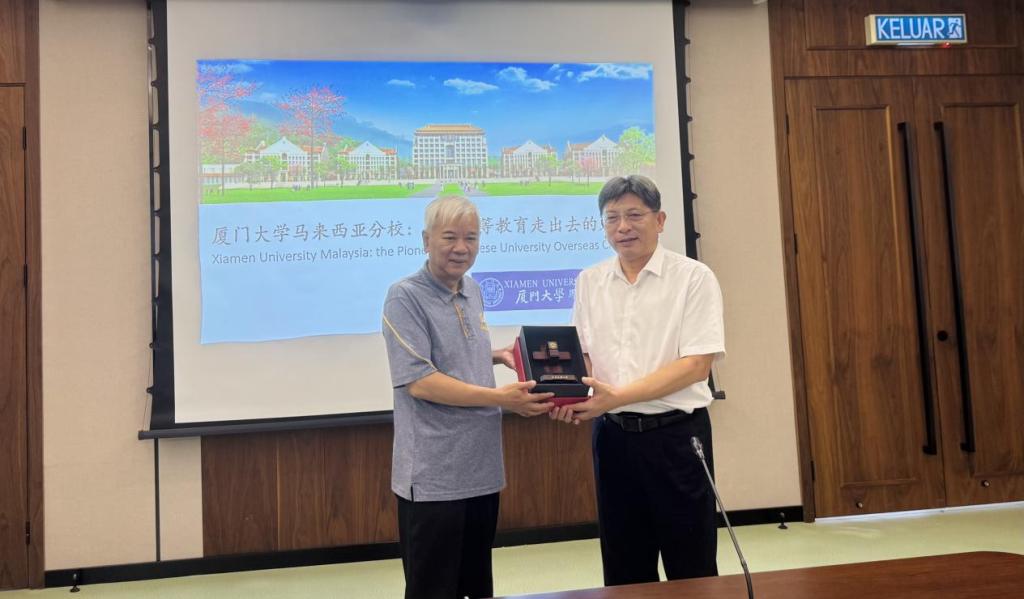 代表团访问厦门大学马来西亚分校期间,与校长王瑞芳、校长办公室主任丁彧进行会谈交流。王瑞芳校长介绍了厦门大学马来西亚分校的办学历史和办学特色,双方就申办中外办学机构交换了意见。