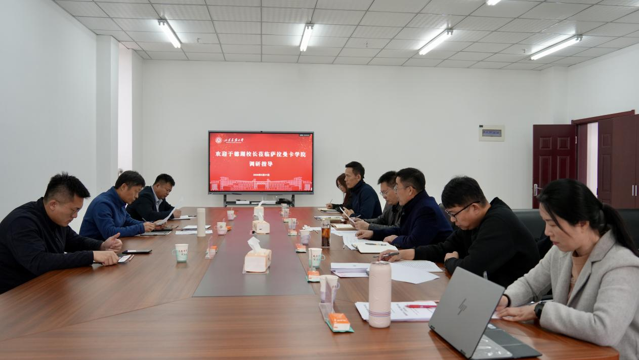 于德湖在认真听取汇报后,对筹建工作组前期取得的阶段性成效给予肯定。他指出,学校党委高度重视萨拉曼卡学院筹建工作,将其作为推动学校内涵发展、提升国际化办学水平的重要契机,要全力以赴把筹建工作办好办实。结合调研情况,于德湖对下一步工作提出明确要求:一是提高政治站位,深刻领会学校党委对筹建工作的部署要求,充分认识学院筹建的重要性和紧迫性,严格按照上级文件要求和协议约定,高标准做好筹建工作,为学校国际化办学注入新动能;二是树立系统思维,进一步提高工作的系统性,统筹规划筹建各环节、各领域工作,理清人才培养、资源保障、管理服务等核心任务的内在逻辑,明确各阶段重点目标与衔接节点,确保各项工作有序衔接、高效运转;三是明确工作目标,以学校党委提出的要求为核心依据,结合学校“十五五”发展规划和国际化办学战略部署,系统梳理并确定学院工作目标,以清晰目标指引筹建全流程,确保各项工作稳步推进;四是加强组织建设,进一步细化筹建工作组内部岗位职责与运行流程,建立健全议事决策、分工协作等工作机制,加强内部沟通协作、凝聚工作合力,构建内外协同、上下联动的良好工作格局。