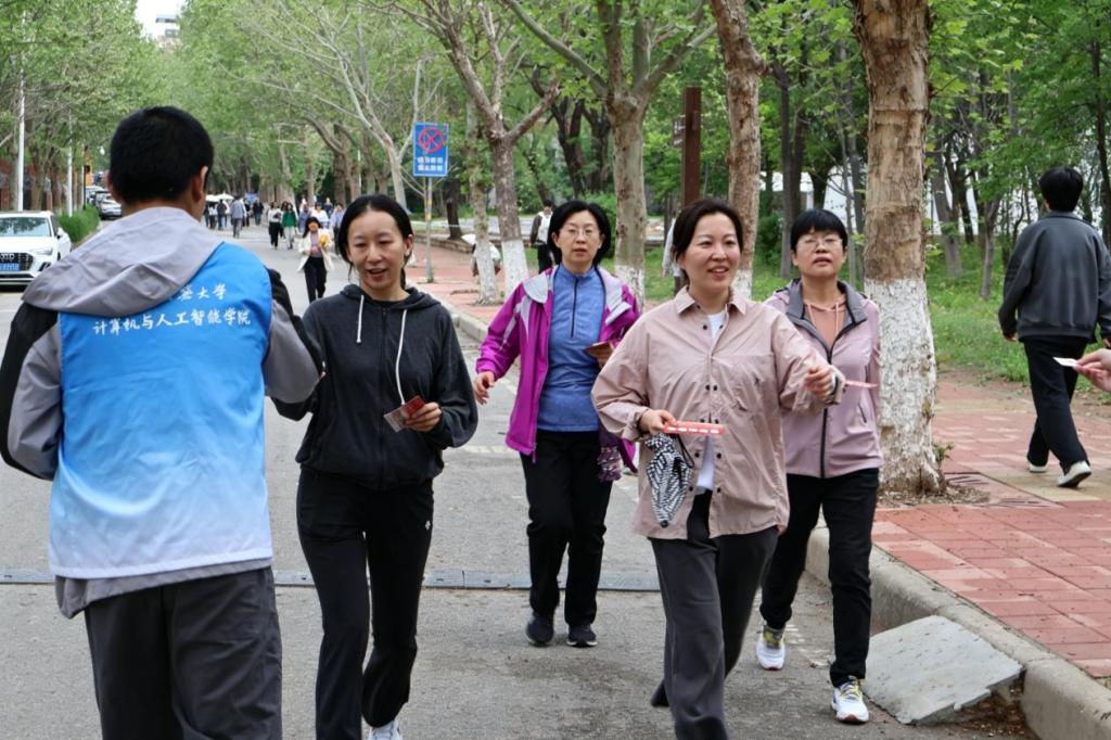 全校三百余名女教职工兴致勃勃参与了本次活动,大家在春意盎然的校园里结伴而行,身姿矫健、活力满满,欢快轻松的健步走队伍与盛放的春日繁花相映成趣,构成校园里一道灵动靓丽的风景线。志愿者同学们沿途为女老师们发放了具有校园特色和70年校庆元素的健步走参赛卡和打卡贴,作为参赛纪念。