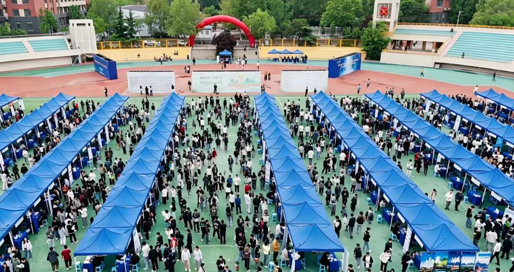 首届建设行业人才(大学生专场)招聘会在学校体育场同期举行,582家用人单位来校招聘,企业类型涵盖央企国企、行业龙头企业及新兴领域重点企业,现场提供优质就业岗位2.2万余个,毕业生积极求职。张翌、杨景波一行到现场调研指导工作,与用人单位代表进行了交流,详细了解人才需求等情况。为提高毕业生求职成功率,学校在招聘会现场设立就业指导专区、AI就业赋能专区,为毕业生提供生涯规划、简历诊断、AI面试等10余项就业指导服务。