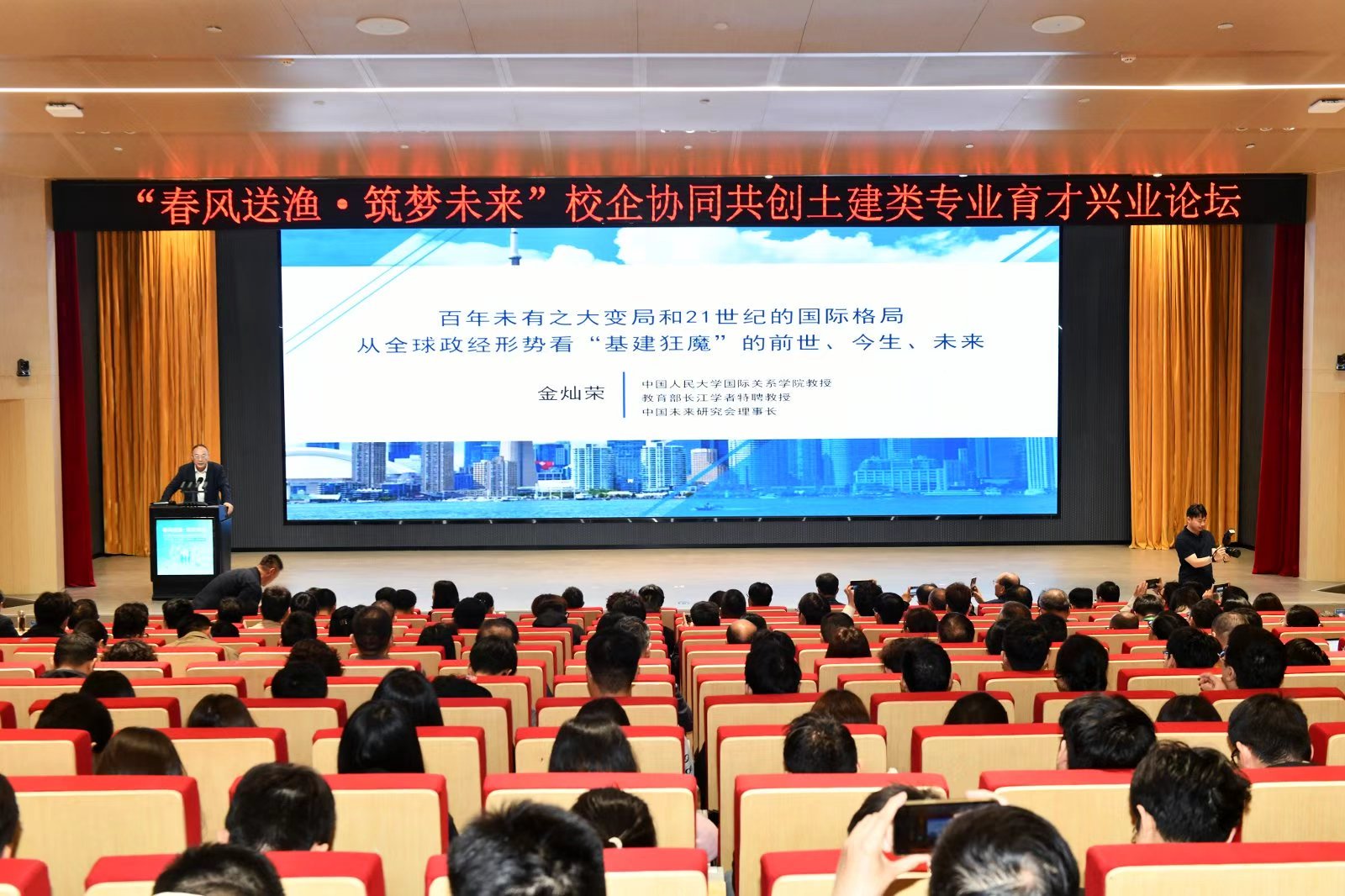 论坛期间,美国问题研究专家、中美关系专家、中国人民大学国际关系学院金灿荣教授分享了“从全球政经形势看‘基建狂魔’的前世、今生、未来”报告,于德湖分享了“人工智能赋能高等教育人才培养的探索与实践”报告,中国工程院肖绪文院士助理朱彤分享了“智能建造务实求效”报告,中国建设教育协会就业创业工作委员会秘书长、罗勒尚才(北京)科技有限公司董事长张红芳分享了“以规划订制人才、以人才定义企业”报告,同济大学土木工程学院副院长、博士生导师阮欣教授分享了“‘师-机-生’共创未来课堂”报告,中建子企业区域人力资源负责人侯承材分享了“从育苗到成材-大型建筑企业的内生型人才培养体系”报告。