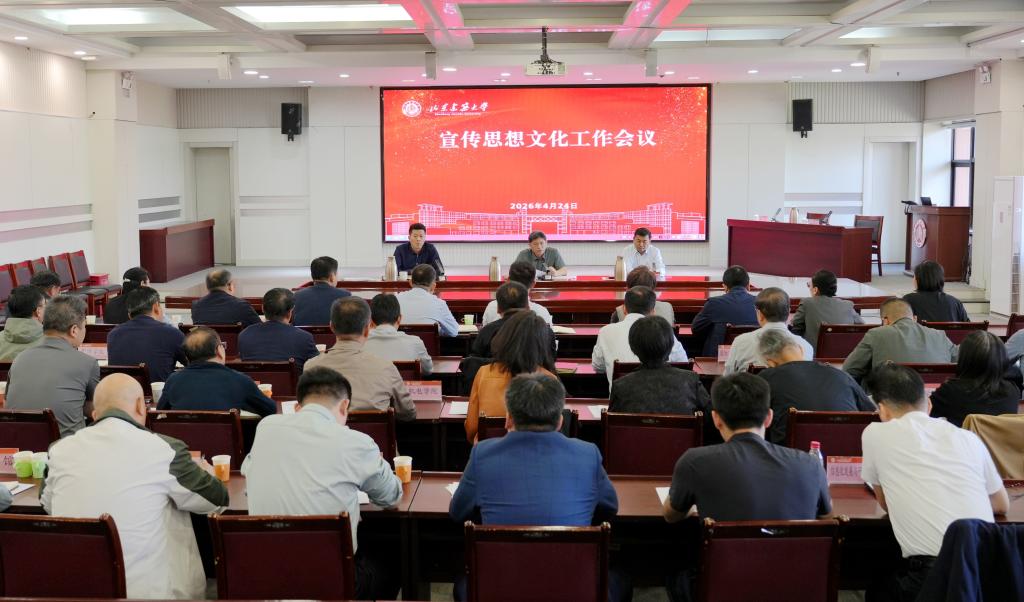 4月24日下午,学校召开宣传思想文化工作会议,深入学习贯彻习近平总书记关于意识形态工作的重要论述和党中央决策部署,集体学习意识形态工作有关文件精神,集中传达全省学校思想政治工作会议精神,进一步分析形势、明确任务、压实责任、推动落实。学校党委书记杨景波出席会议并讲话。会议由党委副书记许记中主持。