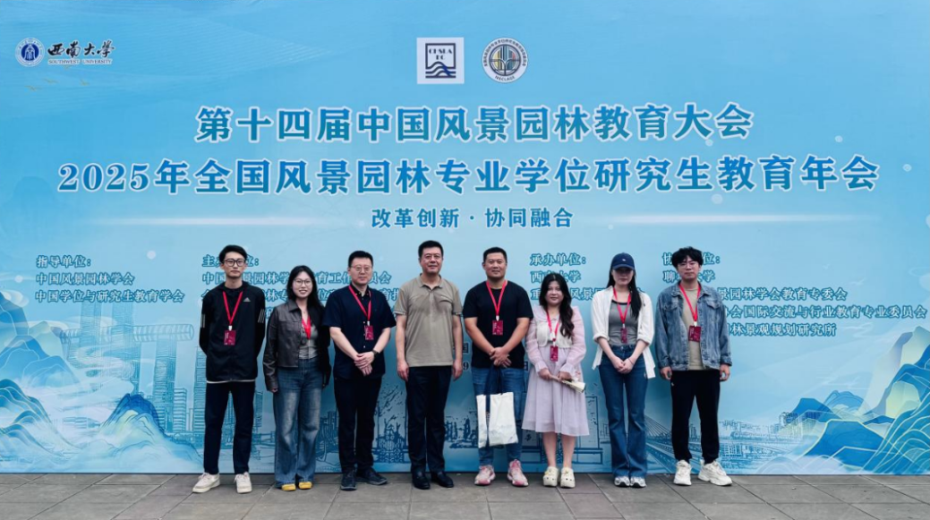 2025年9月26日至28日,第十四届中国风景园林教育大会暨2025年全国风景园林专业学位研究生教育年会在重庆西南大学成功举办。本届大会以“改革创新·协同融合”为主题,是我国风景园林教育领域两项重要学术活动的首次联合举办。大会汇聚了来自全国各地的专家学者、行业代表和师生代表,共同探讨新时代背景下风景园林教育的创新发展路径。会议包含主旨报告、四大主题论坛、十个分论坛与八个研究生论坛,全面展示了风景园林学科在教学改革、产教融合等方面的探索与成果。我校建筑城规学院院长任震教授带领风景园林系师生10人参与了本次大会相关活动。