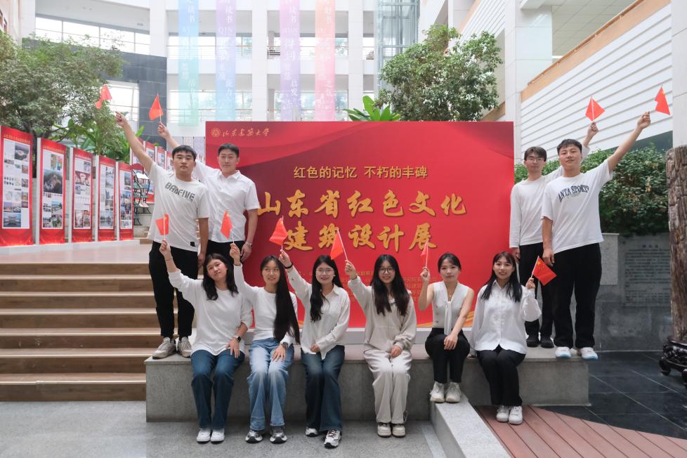 在深入参观交流之后,同学们汇聚于红色文化建筑设计展厅之中,以一张张精心策划的集体照来庆祝新中国成立75周年,在集体照中共同摆出寓意深远的“爱心”造型。爱心下的五星红旗寓意着大家“心系国家,热爱祖国,国在心在,国强心强”的爱国精神。