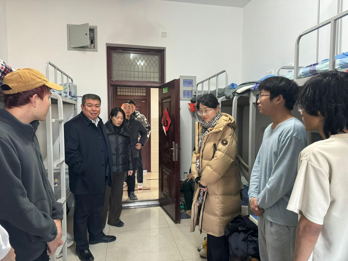 以“问题破解”为关键点,组建“一体化推进”工作专班。自下发通知以来,学院高度重视,第一时间作出部署,成立“学院党政领导干部带队,党员干部带头、班主任(辅导员)为主体、全体教师参与”的专项行动工作组,积极筹备,精心谋划。1月9日上午,市政与环境工程学院党委书记李杰瑞、党委副书记卞梅、副院长王永磊、成小翔、刘兵带领学院辅导员和学生干部及党员深入学生宿舍开展走访慰问活动。走访过程中,学院领导们与学生面对面交流,倾听学生的心声,了解学生的需求,着重强调了宿舍和假期安全问题,耐心倾听了大家在专业学习、人际交流、身心健康、未来规划等方面的情况,细致入微地为同学们答疑解惑,化解学生思想上的“小包袱”,打通育人“最后一公里”。