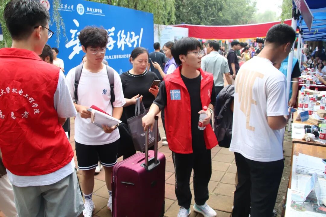 为保障迎新工作顺利开展,机电工程学院提前部署,在迎新点设置新生报到区、绿色通道区、党员服务区、教授答疑区等报到服务区及特色迎新互动区,多部门协同合作,不仅优化了报到流程,还提供了数字化服务支持。新生可通过线上系统提前完成部分手续,大幅减少了现场排队时间。早晨7点,学院各部门的迎新工作人员和志愿者早已就位,以最饱满的热情迎接新生的到来。报到现场秩序井然,信息核验、材料分发、住宿办理等环节高效顺畅。从进校门到入住宿舍,一路都有志愿者贴心引导,让人倍感温暖。