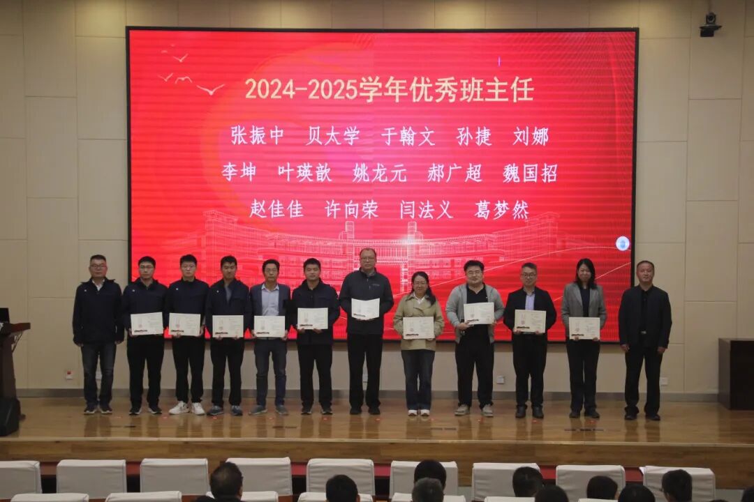会上对过去一学年表现突出的教师进行表彰:在班主任工作案例评选中,姜小琛老师以创新性班级管理案例斩获一等奖,刘娜、张振中老师凭借扎实的实践成果获三等奖;张振中、贝太学、于翰文、孙捷等14位教师因学生管理与育人实践成果显著获评“优秀班主任”;张振中老师凭借卓越的育人成效与师德风范荣获“最美班主任”称号。
