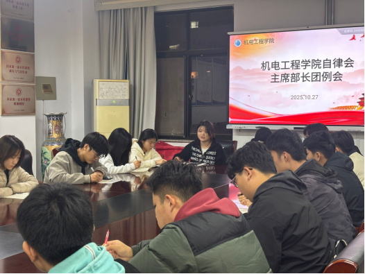 为总结开学以来的各项工作,分享管理经验,并规划下一阶段任务,10月27日下午18:00,机电工程学院自律委员会在科技楼516教室召开了主席部长团工作经验分享会。自律委员会指导老师赵高杰及主席团、各部门部长共同参与了本次会议。