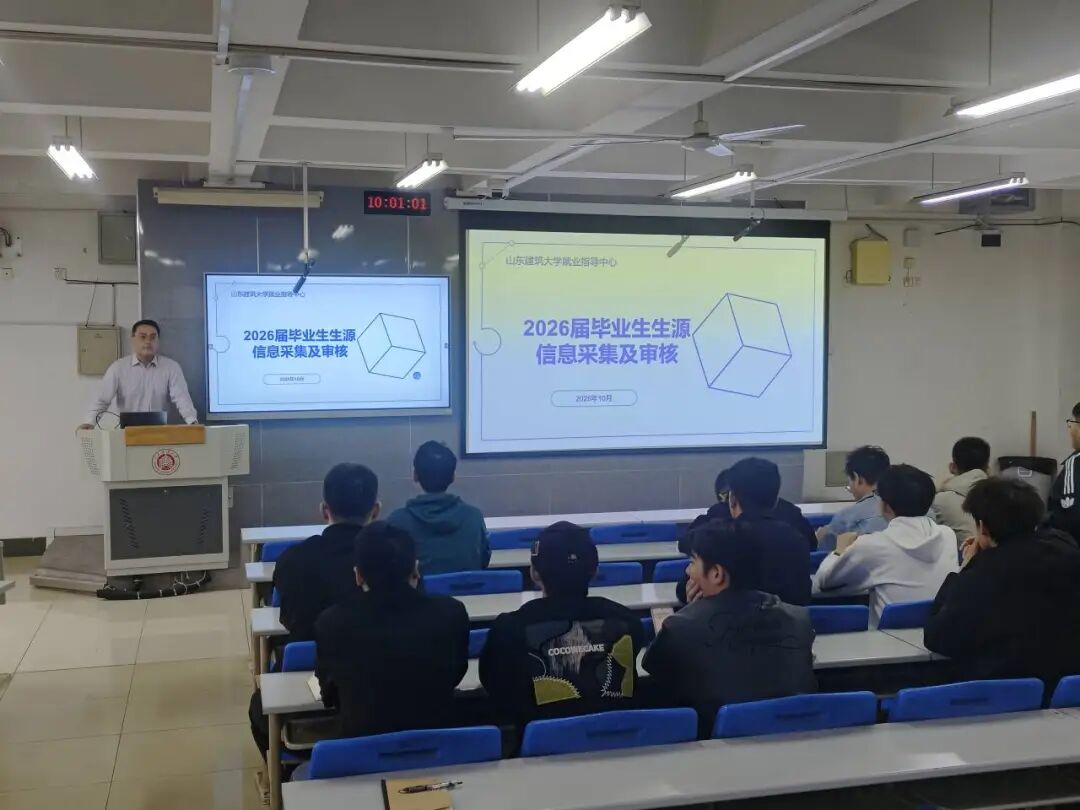 为全面贯彻落实山东建筑大学《关于做好2026届毕业生生源信息采集及审核工作的通知》精神,确保毕业生生源信息准确、规范,为后续的就业服务工作奠定坚实基础,近日,机电工程学院在科技工程馆521教室组织召开了2026届毕业生生源信息采集及审核工作培训会。学院2026届毕业班辅导员及毕业班班长、团支部书记等主要学生干部参加了本次培训。