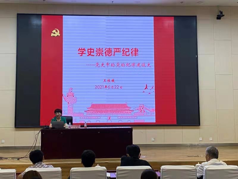为深入开展党史学习教育,不断从发展的历史总结经验、明确方向、凝聚共识、汇聚力量,6月22日下午,党委委员、纪委书记、省监委驻山东建筑大学监察专员王桂媛在300人学术报告厅讲授了一堂主题为“学史崇德严纪律”的党史学习教育党课。