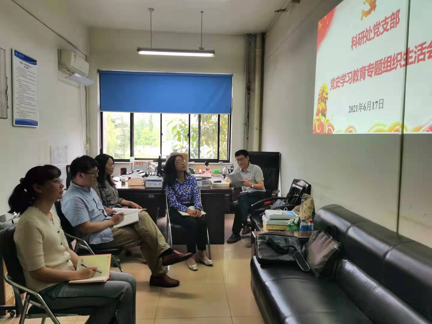 2021年内6月17日,科研处党支部在办公楼210召开党史学习教育专题组织生活会,认真剖析支部和党员本人在党史学习教育中存在的问题,并形成问题整改清单。