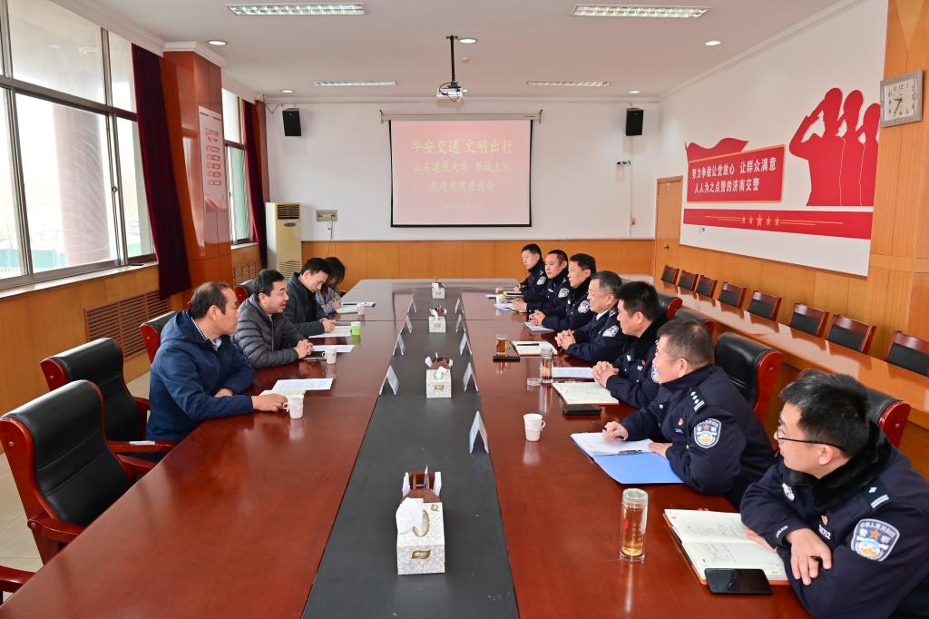 为深化警校协作,提升校园及周边交通治理水平,12月16日,安全管理处党支部赴济南市历城区交警大队开展党建共建专题座谈。双方围绕“深化警校协作,共筑平安之路”主题进行深入交流,共谋校园交通安全长效机制。