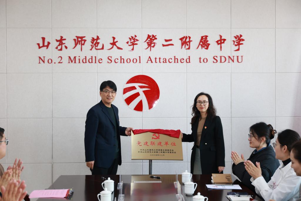 仪式上,山东师大二附中团委书记邹旭介绍了联建共建的背景意义与实施方案。双方秉持党建引领、优势互补、科学统筹原则,签订《党建联建共建合作备忘录》,并为联建共建基地揭牌。随后,现场宣读了学生兼职副书记聘任决定,与会领导为受聘学生颁发聘书,学生代表现场作表态发言。