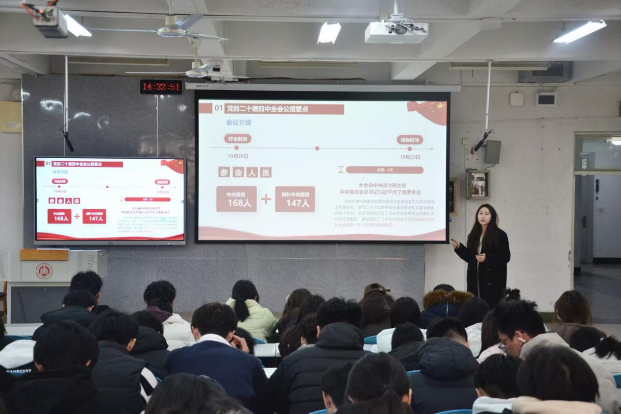 为扎实推动党的二十届四中全会精神在青年群体中入脑入心、见行见效,激励广大学子紧跟时代步伐、勇担复兴大任,2025年12月4日,山东高校青年师生宣讲团成员、马克思主义学院2025级研究生王玉珍走进计算机与人工智能学院,在外文009开展了一场内容鲜活、解读深入、联系实际的专题宣讲。