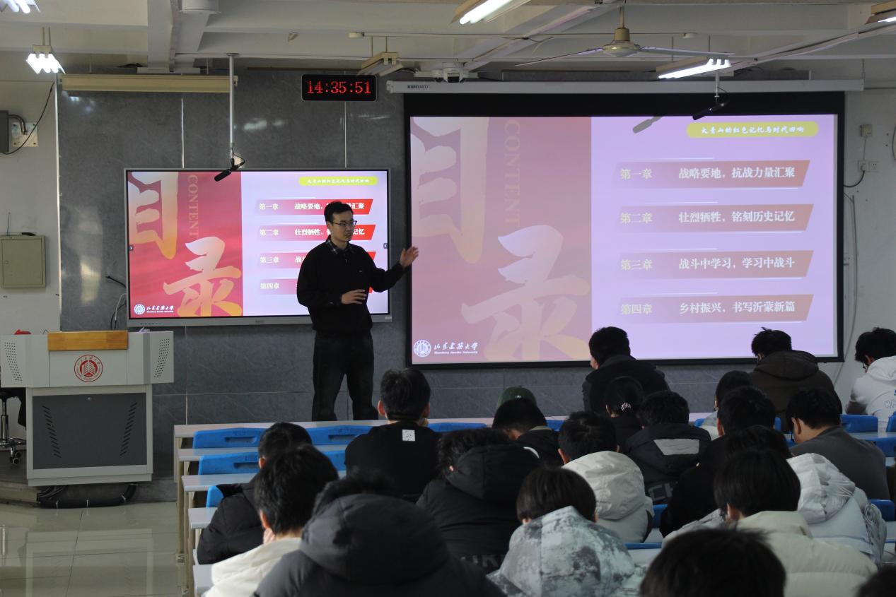 为传承红色基因、弘扬沂蒙精神,引导青年学子从革命历史中汲取奋进力量,12月11日,学校“筑基明德”理论宣讲团成员、信息与电气工程学院辅导员孙一钧老师走进计算机与人工智能学院,在科技馆321开展 “青山不朽、精神永续——大青山的红色记忆与时代回响”主题宣讲活动,计算机与人工智能学院2023级学生参与学习。