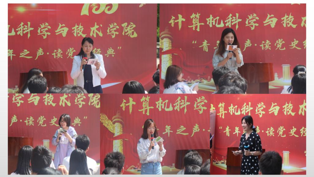 为发挥优秀学生在党史学习教育中的重要作用,进一步教育引导大学生学史明理、学史增信、学史崇德、学史力行,5月21日-5月27日,计算机科学与技术学院优秀学生党史宣讲团在校史馆前、映雪湖畔举办了三期“青年之声·读党史经典”活动,学院党委书记王少华、学生党支部书记、辅导员、学生党员代表参加了此次活动。