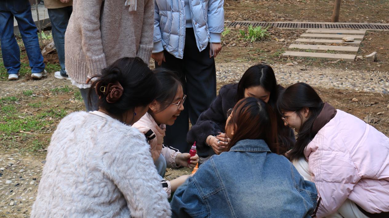植树环节结束后,活动进入班级菜园认领与种植阶段。2025级学生以班级为单位,有序认领专属菜园,大家手持画笔,在菜园盒子上尽情挥洒创意,绘制出充满青春活力的图案,既有班级特色标识,也有对劳动收获的美好期盼,每一笔色彩都承载着同学们的热情与向往。彩绘完成后,同学们小心翼翼地撒下菜种,轻轻覆盖土壤、浇水灌溉,动作轻柔而认真,仿佛在呵护每一个即将萌发的希望。其间,辅导员们穿梭在各个班级之间,耐心指导同学们掌握播种技巧,讲解农作物生长知识,现场氛围热烈而温馨。
