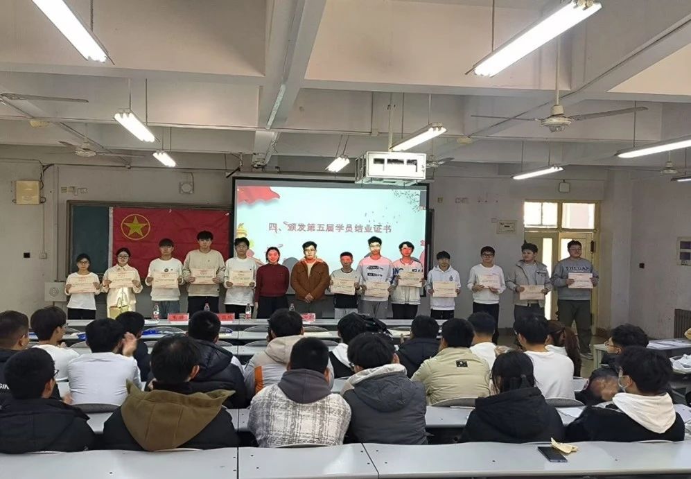 由阚乐乐老师、王浩镔老师为第五届青马班学员颁发结业证书