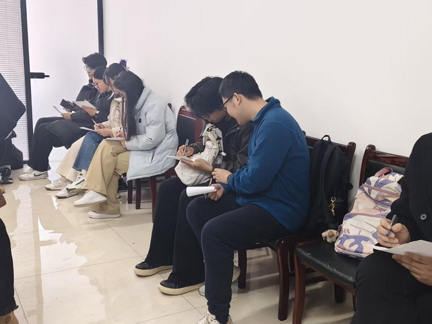 最后的能量加油圈将活动推向高潮,全体同学手拉手围成同心圆,通过深呼吸清空焦虑,轮流为身边同伴送上具体真诚的复试祝福,没有空洞的加油,只有“英语面试对答如流”“直挂云帆济沧海”的真切期许。大家携手齐喊“上岸!”口号,将彼此的鼓励化作备战复试的坚定力量。