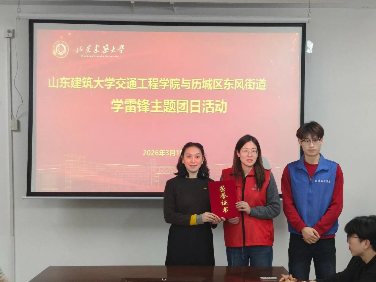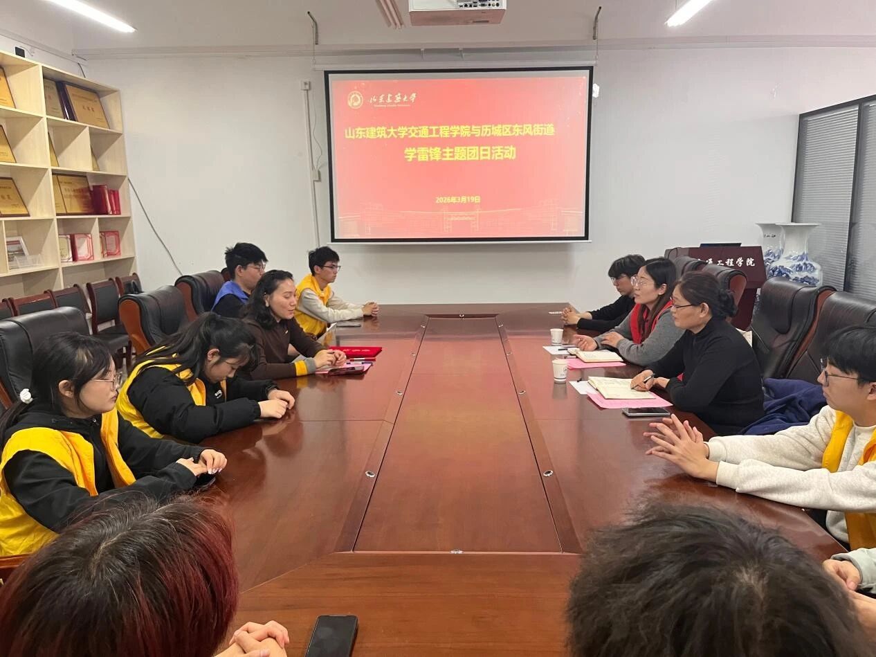 为深入学习贯彻习近平新时代中国特色社会主义思想,弘扬“奉献、友爱、互助、进步”的志愿精神,推动学雷锋活动常态化、品牌化,3月19日下午,山东建筑大学交通工程学院与济南市历城区东风街道联合举办“薪火传雷锋,志愿筑青春”学雷锋主题团日活动。东风街道社工站站长马菲、济南市善行社会工作服务中心督导主任周瑞敏,交通工程学院团委书记阚乐乐及20余名志愿者代表共同参与。