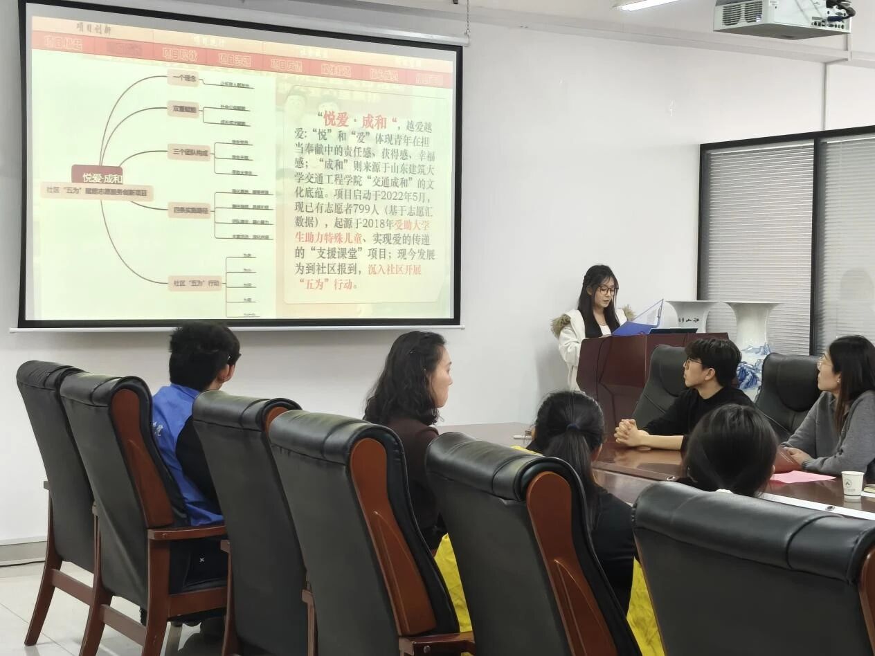 在志愿服务项目分享环节,交通工程学院“悦爱·成和”志愿服务队志愿者汇报了社区“五为”赋能志愿服务项目。该项目围绕“为老、为小、为困、为心、为需”五大方向,构建了常态化志愿服务体系,通过精准对接社区需求,打造了系列特色服务活动。