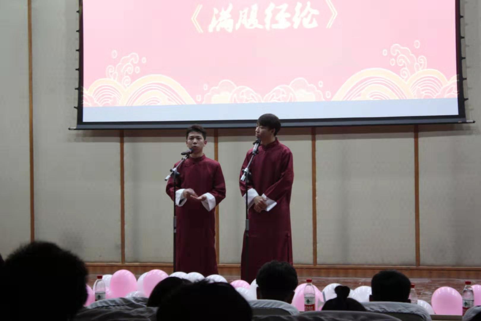 校园礼堂,学院盛会,展露风采,筑梦一九。随着主持人的热情介绍,晚会在掌声中拉开帷幕。在初始沉寂后突然灯光一闪,2018级王雨佳同学轻盈曼妙的身姿随着音乐开始舞蹈。开场独舞,瞬间点燃全场的氛围;幽默诙谐的小品《清考风波》,轻巧的语言和生动的演绎,引起全场接连欢笑;吉他弹唱《大海》,独有的声线,清晰的吐词,干净的声音,流露出思念的情感;方言朗诵《祝酒歌》,山东话、福建话、广东话、重庆话……各种话都是中国话,中国话传唱出当代大学生对祖国富强的自豪之情;歌曲合唱《成都》,没有华丽的词藻,却也唱出对生活的体会和感悟。晚会在歌曲串烧中落下帷幕,以朝气蓬勃彰显着学院新生的青春活力;以优美旋律唱出了学院浓厚的文化风韵;以幽默诙谐表演出学院的风雅趣味。本次晚会还设置了互动环节,学生们边看节目边发感想,晚会线上线下连续互动,推向节目的高潮,给观众带来别样的体验。