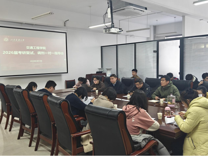 春意盎然,梦想扬帆。3月12日,山东建筑大学交通工程学院精心组织2026届考研复试、调剂一对一指导会,学院院长张思峰,副院长付涛,党委副书记王颖,教学办、学工办负责同志,各系主任,一对一帮扶老师以及2026届考研初试上岸学生参加。