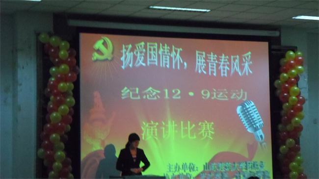 2014年12月14日下午2点,山东建筑大学校团委主办,交通学院团总支、材料学院团总支及山东建筑大学影视协会在博文305教室联合举办了129爱国电影展及演讲比赛活动(活动初期有现场投票和留言墙,后期有观影和演讲比赛)。各学院秘书长担任本次活动评委。