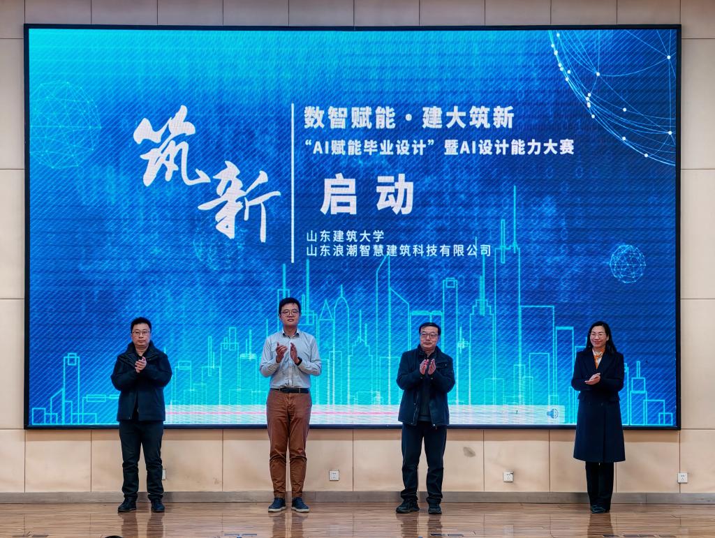 3月20日上午,我校“数智赋能・建大筑新——校企协同AI赋能毕业设计暨AI设计能力大赛”启动仪式在300人报告厅顺利举行。副校长赵继龙出席仪式并致辞,山东浪潮智慧建筑科技有限公司智能设计事业部副总经理汪雨池、赵炜出席活动。