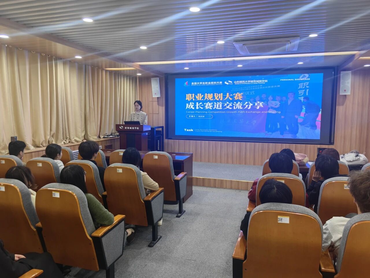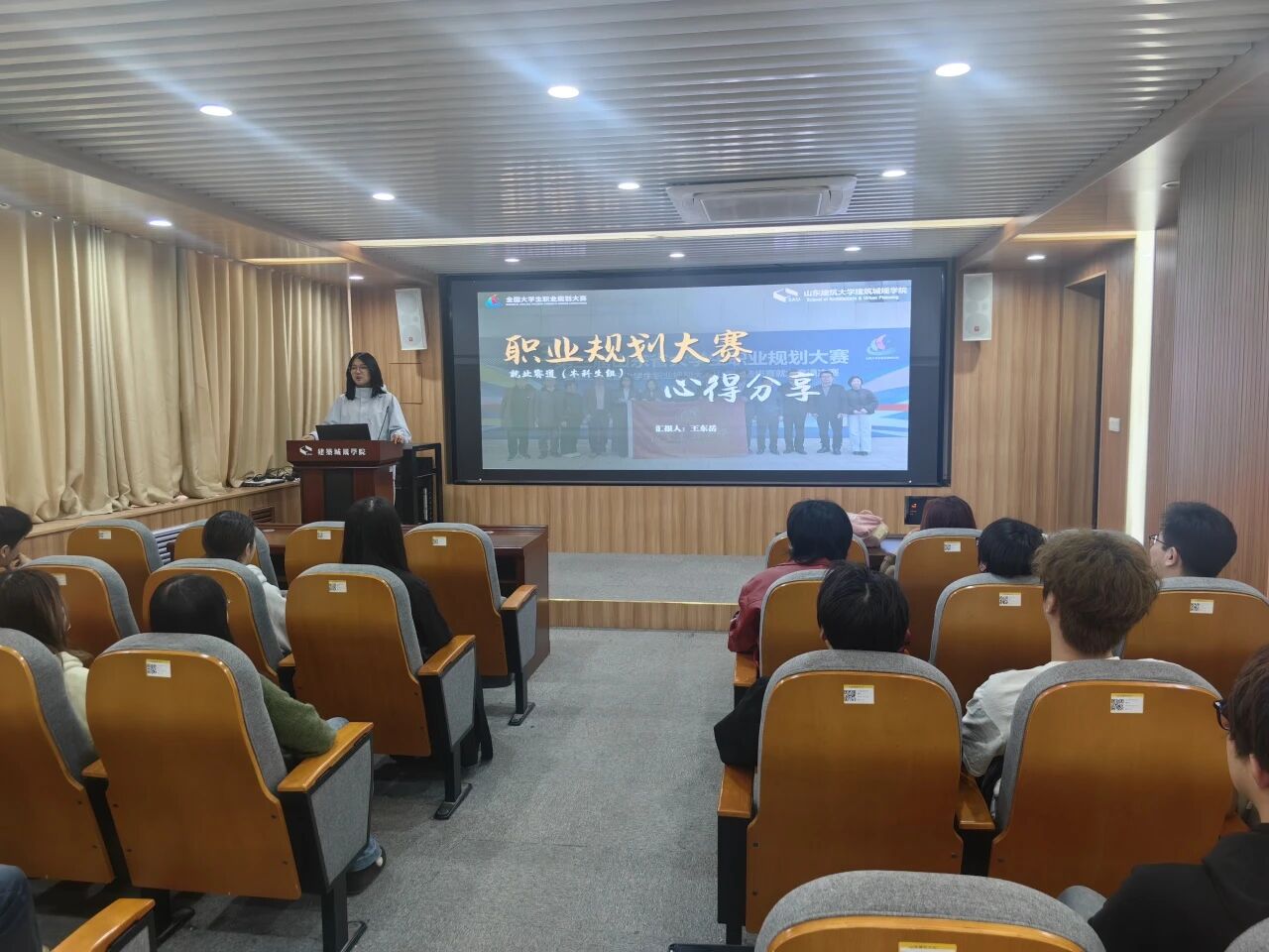 为进一步强化生涯教育与就业指导,帮助学生深化赛事认知、明确职业方向、提升就业竞争力,3月26日,建筑城规学院在建艺馆204成功举办职业规划大赛专题分享会。会议邀请在第三届全国大学生职业规划大赛山东省选拔赛中斩获佳绩的三位优秀学子,向同学们分享实用的备赛技巧与职业规划心得。