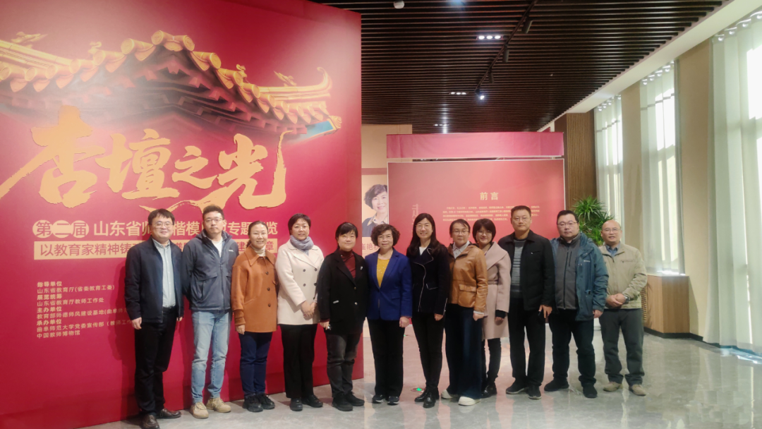 在中国教师博物馆,老师们重点参观了“山东省‘杏坛之光’师德楷模风范展览”。展览通过多媒体交互技术,生动展现了40位齐鲁教育工作者践行教育家精神的感人事迹。尤为引人注目的是,学院崔艳秋教授作为展览人物之一,其39载春秋坚守育人初心的感人事迹,让在场每一位教师无不为之动容,深刻感受到教育工作者矢志不渝的精神力量。随后,循着我国教育发展的历史脉络,老师们依次参观了“教师的历史”“教师的摇篮”“教师的典范”等核心展区。通过博物馆珍贵的文物史料、生动的图片和互动体验,系统了解了中国教育从古代私塾到现代教育的演进历程,深刻感悟了一代代教育家“躬耕教坛、强国有我”的责任与担当。最后,在庄严肃穆的宣誓厅,崔艳秋教授带领全体教师重温人民教师誓词,铮铮誓言彰显杏坛初心。