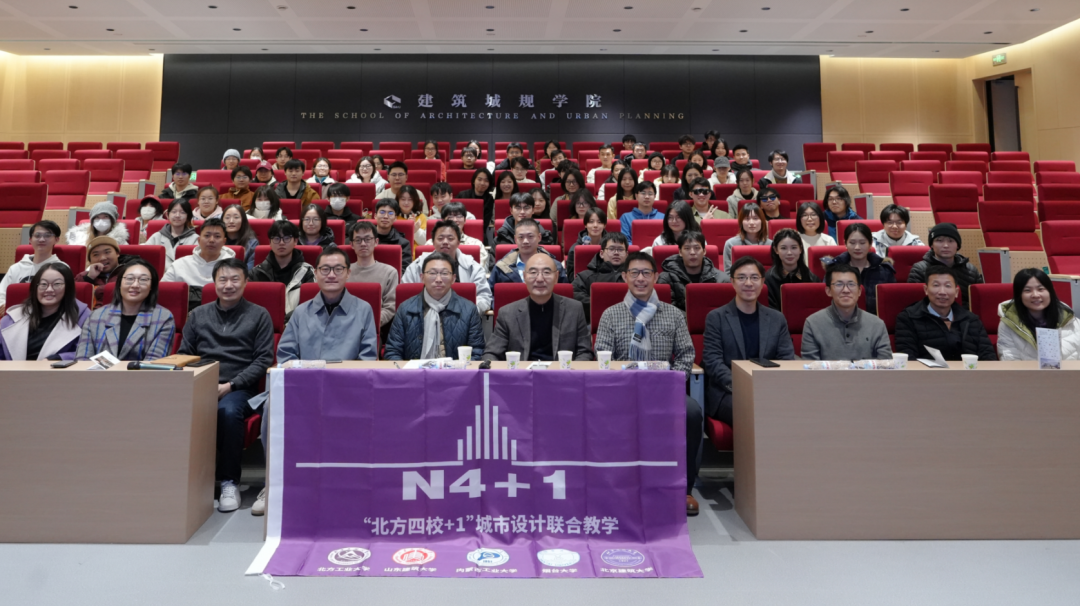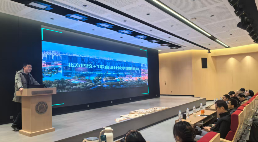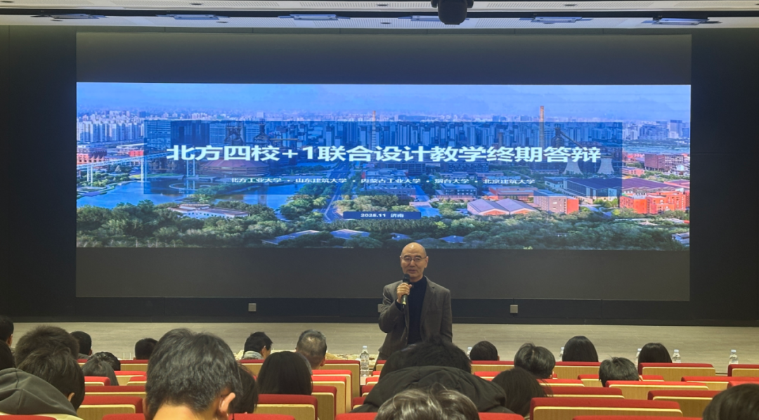 2025年11月18日,由北方工业大学、山东建筑大学、内蒙古工业大学、烟台大学和北京建筑大学联合主办的“2025第十届北方四校+1联合设计终期答辩暨联合教学研讨会”在山东建筑大学建筑城规学院顺利举行。来自北方五所学校的近100名师生代表济济一堂,围绕“北京大唐国际发电股份有限公司厂区及周边片区城市更新”课题进行设计探讨。