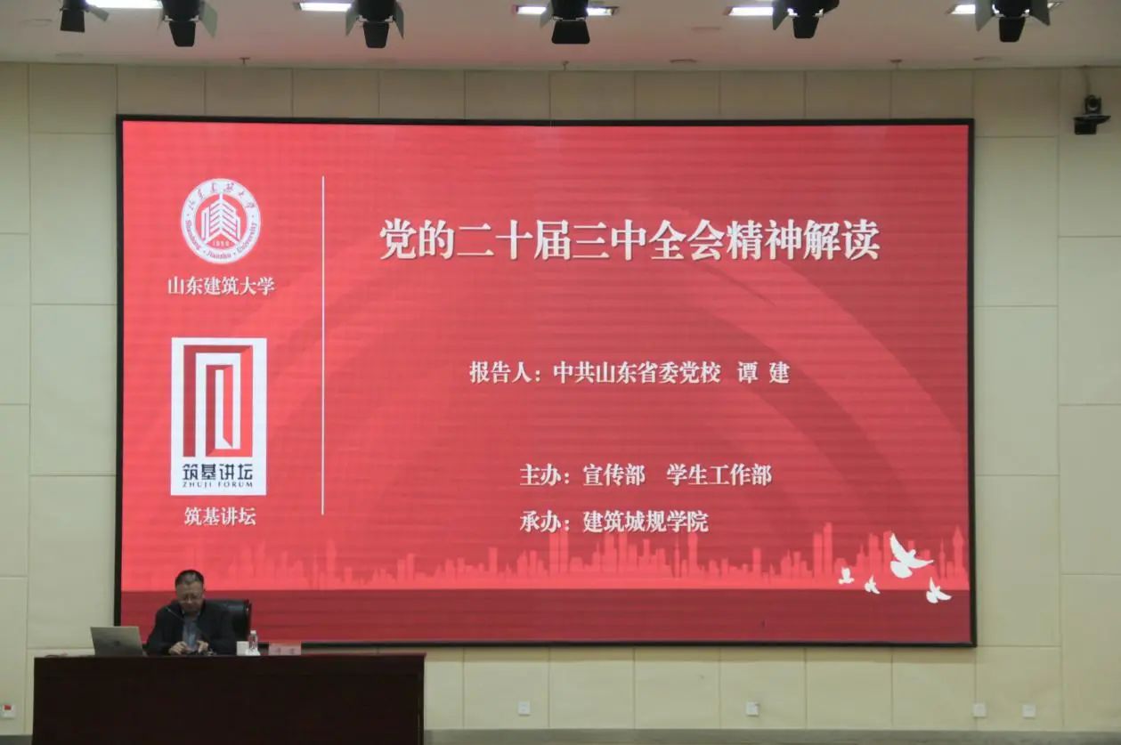 12月6日,中共山东省委党校校刊编辑部主任谭建教授应邀做客山东建筑大学“筑基讲坛”。活动由宣传部、学生工作部主办,建筑城规学院承办。报告会由建筑城规学院党委书记董欲晓主持。