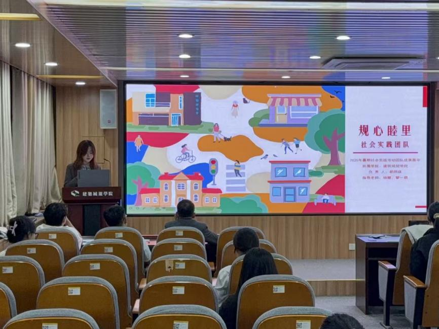 为总结暑期社会实践成果、交流实践经验,进一步巩固“受教育、长才干、作贡献”的实践育人成效,9月23日下午,建筑城规学院于JY204组织开展了2025年暑期社会实践答辩会,各社会实践团队代表进行成果展示,学院全体辅导员老师担任评委。