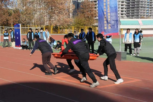 本次赛事紧扣“全民消防 生命至上”主题,由济南市历城区消防救援大队指导,设置了“穿越火线”“烈焰攻坚”“急救生命线”等贴合校园安全场景的项目。发令声响,学院四名队员从起点迅疾起跑,奔赴各赛段;模拟起火区域内,他们规范操作灭火器具,动作利落且步骤严谨;应急救援环节里,他们协作配合,平稳迅捷地完成假人转移,最终高质量完成全部考核科目,展现了过硬的专业素养与昂扬的精神风貌。