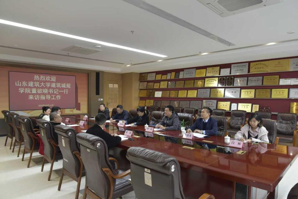 10月11日,山东建筑大学建筑城规学院班子成员与学校合作发展办公室副主任于泽华一行前往山东大卫国际建筑设计有限公司,走访学校济南校友分会并进行工作交流。我校济南校友分会会长、山东大卫国际建筑设计有限公司董事长申作伟,济南校友分会副会长、山东万邦科技发展集团有限公司董事长王慧斌,济南校友分会副会长、山东大卫国际建筑设计有限公司总经理张冰等参与座谈。本次走访交流重点围绕商讨济南校友分会发展、学生就业实践、设立企业奖学金等内容展开。