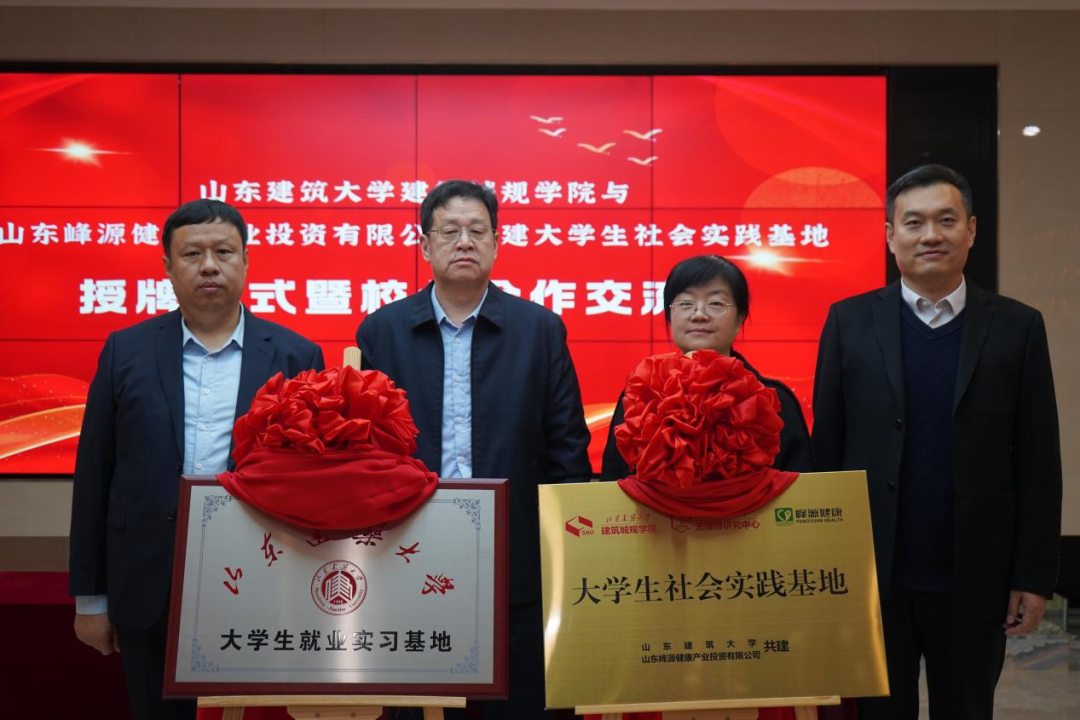 王春元首先代表企业对建筑城规学院一行的到来表示热烈欢迎,并表达了峰源健康对与高校合作、共育专业人才的高度重视与期待,希望以此次合作为契机,实现资源共享、优势互补。建筑城规学院党委书记董欲晓代表学院致辞,感谢企业对学院发展给予的支持,重点介绍了学院在学科建设、教学科研、学生培养等方面的特色优势,以及学校无障碍研究中心在研究与实践方面取得的进展与成果,希望进一步加强产学研深度合作,推进适老化改造与养老服务,共同守护“老有所安”的美好图景。仪式上,与会领导分别为大学生社会实践基地、就业实习基地揭牌。