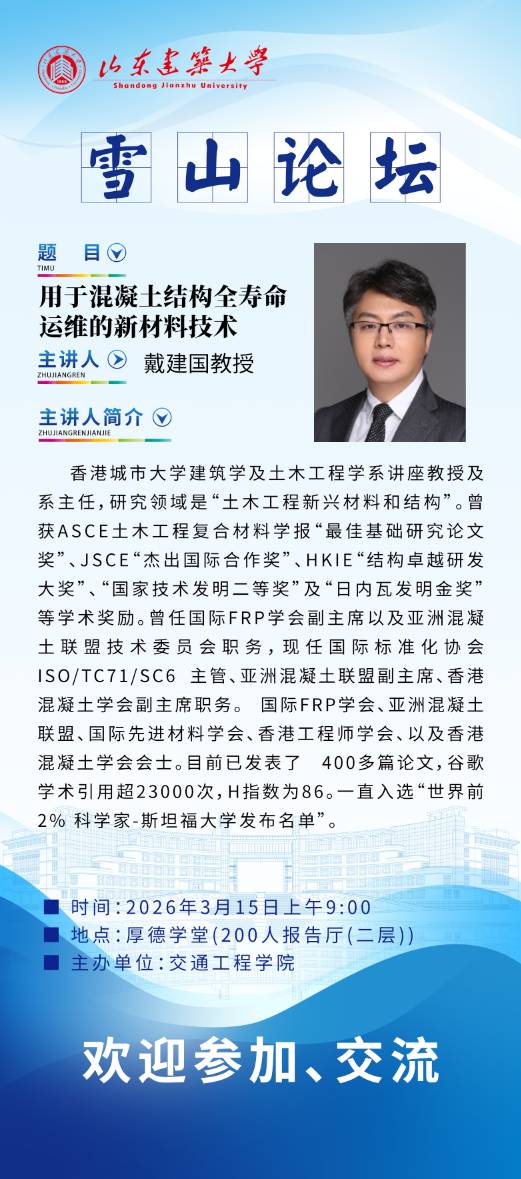 【我校学术活动-雪山论坛】用于混凝土结构全寿命运维的新材料技术
