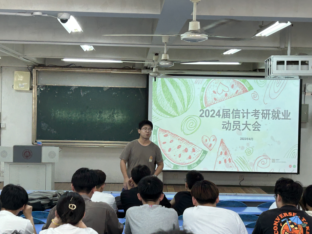 为深入贯彻习近平总书记关于就业工作的重要指示精神,营造升学就业浓厚氛围,助力考研学子做好学业规划。6月29日下午,理学院2024届信计专业考研就业动员大会在外文楼111顺利召开。信计专业班主任李翔、蔺丽君,信计校企专业班主任陈怀广以及2020级信计(含校企)专业全体学生参加,会议由2020级信计(含校企)专业辅导员王守英主持。