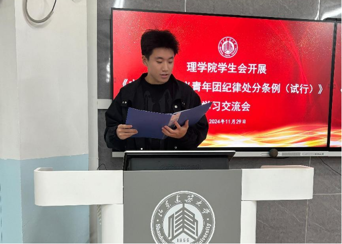 理学院学生会于11月28日召开《中国共产主义青年团纪律处分条例(试行)》主题学习会。理学院学生会秘书处部长徐金帅带领大家对《中国共产主义青年团纪律处分条例(试行)》进行深度解读。结合实际案例,详细阐述条例中的各项规定,加深大家对条例的理解。