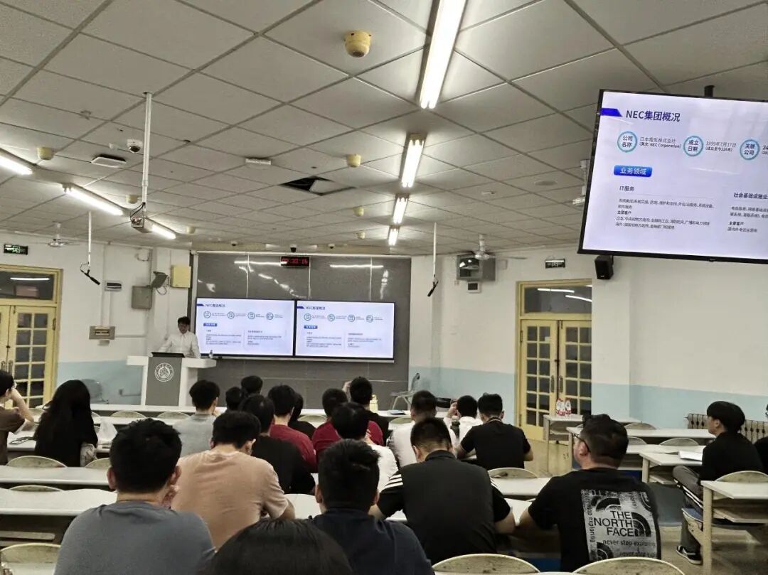 为精准搭建校企对接平台,全力促进毕业生高质量就业,近日,我校理学院成功举办了NEC软件(济南)有限公司专场招聘会。NEC企业校招经理边城、招聘经理崔笑、信计教研室主任刘飞飞、支部书记刘加云、毕业班辅导员王守英以及2026届毕业生共同到场,与企业进行交流,现场气氛热烈有序。