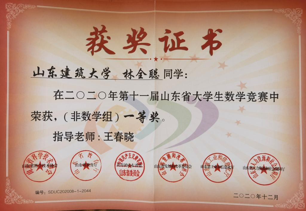 全国大学生数学竞赛部分证书
