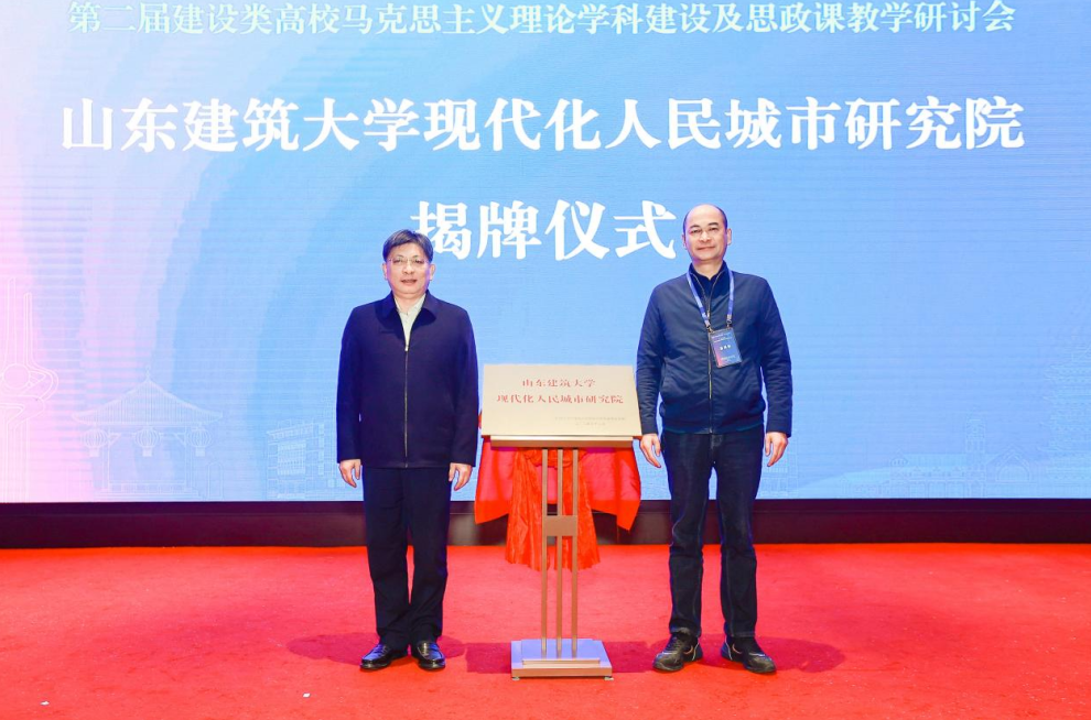 在揭牌仪式环节,黄志良与杨景波共同为“建设类高校马克思主义学院实践教学基地”揭牌;中国辩证唯物主义研究会城市哲学研究分会会长庄友刚与杨景波为“山东建筑大学现代化人民城市研究院”揭牌。此次签约合作及两大平台的成立,将推动马克思主义理论与建筑实践深度融合,为中国式现代化城市高质量发展注入智力支撑。