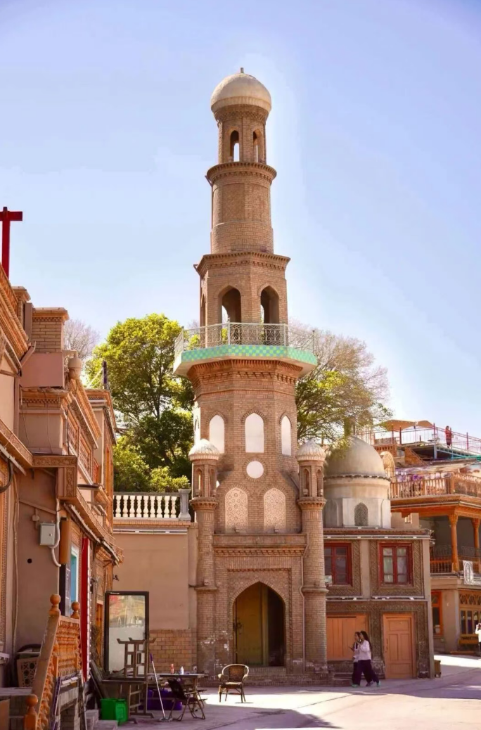 与此同时,团队以“空间互嵌”“技艺共享”“符号共意”“家国同构”四个核心维度为切入点,深挖建筑背后的鲜活故事。通过与当地居民、非遗传承人、老工匠等进行一对一访谈,成员们详细了解了各类建筑的建造历程、修缮故事及民俗关联,将抽象的中华民族共同体元素转化为可感可知的历史细节。其中,喀什古城作为边疆多民族共生的核心载体,承载着各民族共有的记忆;湖北十堰东岳古台是民族共同体包容特质的典范,彰显“你中有我、我中有你”的共生之美;济南南大寺是汉回两族文化交融、共筑共同体记忆的鲜活见证,生动诠释了中华民族多元一体的鲜明特质。此外,海草房、万佛塔等建筑,也从不同角度印证着各民族交往交流交融的悠久轨迹。