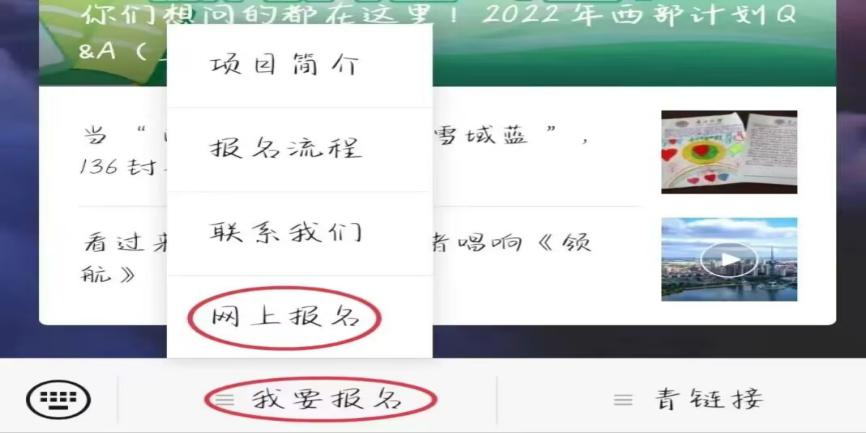 2.点击进入“西部计划报名系统”,进入后按提示关注西部计划官方公众号。