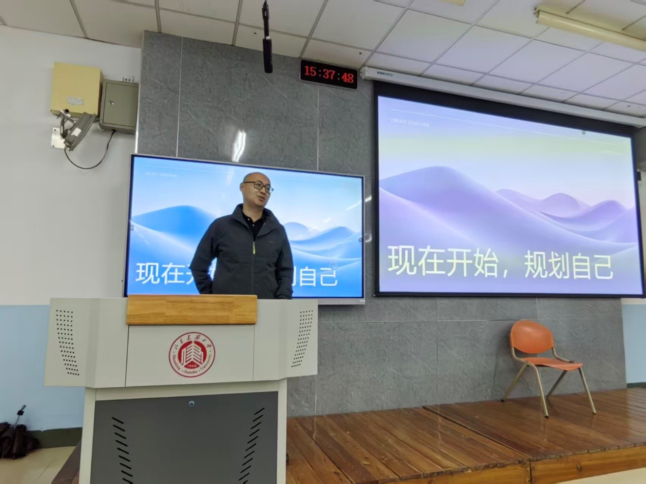 为引导新生科学规划大学生活,树立正确的就业观与职业发展观,近日,热能工程学院分别在博文楼406、312教室举办第十三期“职·能”大讲堂暨大学生就业与职业发展规划讲座。本期活动特邀民盟山东省委教育委员会委员、山东大学职业生涯规划咨询师马立国和山东省就业促进会高校就业与人才引进专业委员会副主任委员王方明老师联袂主讲,学院党委副书记蒋炜玮、团委书记吴高璇及2025级全体新生参与本次活动。