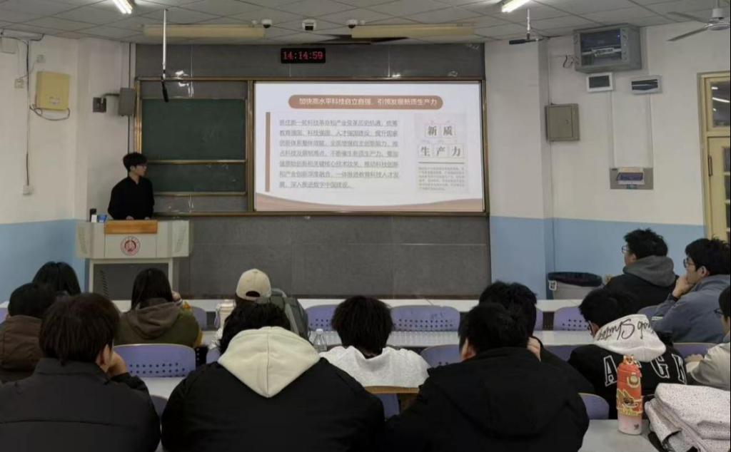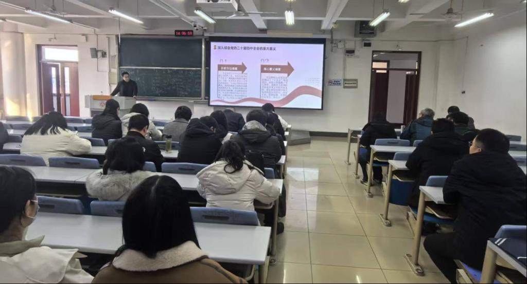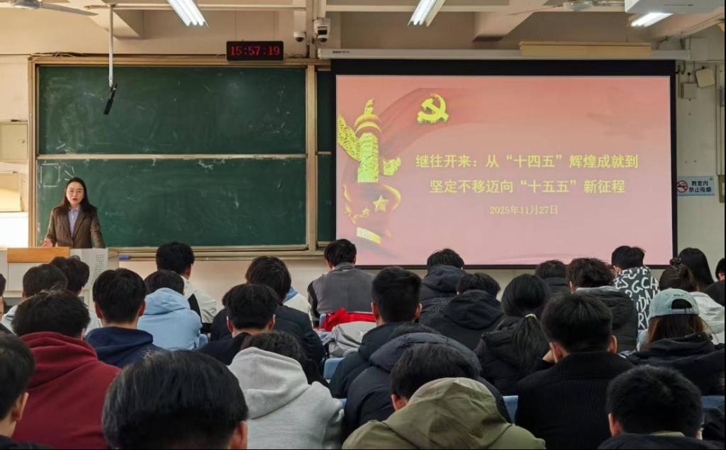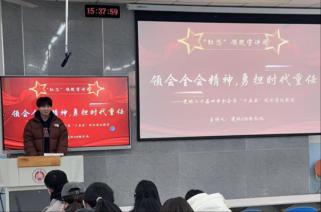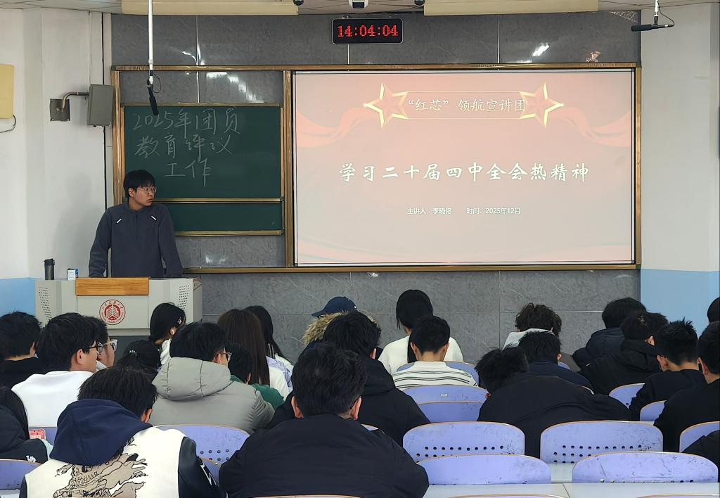 学院充分发挥“红芯·领航”学生宣讲团的生力军作用,依托“周四政治理论学习”制度,让学生党员、团学骨干走上讲台,用青年语言传播党的声音。12月4日至18日,宣讲团成员张学超、李晓佟、杨乐旭、薛雅雯等同学先后开展了6场专题宣讲。围绕“领会全会精神,勇担时代重任”“党的二十届四中全会与‘十五五’规划建议解读”等主题,结合自身学习体会与专业认知,以贴近校园的视角解读全会精神,将“大道理” 转化为“小故事”,让理论学习既有思想深度又具青春气息,推动全会精神在青年学子中入脑入心、见行见效。