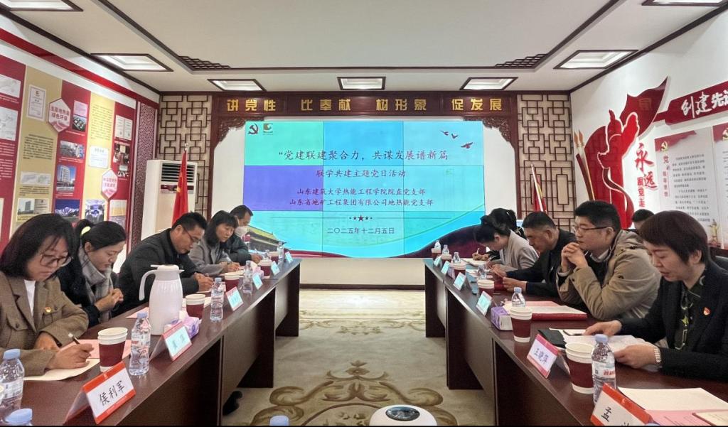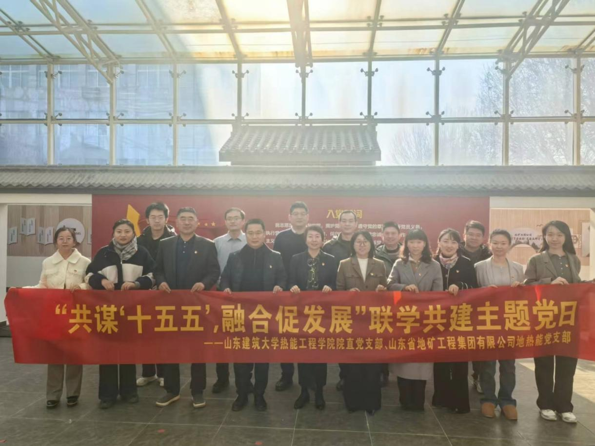 为深化基层党组织建设与业务发展有机融合,探索“党建+校企合作”新模式,12月5日,山东建筑大学热能工程学院院直党支部与山东省地矿工程集团有限公司地热能党支部开展联合主题党日活动。双方以“党建联建聚合力,共谋发展谱新篇”为主题,组织领导班子、支部骨干及企业校友代表等二十余人展开务实交流,共同推动党建工作与事业发展同频共振,互促共进。活动在省地矿集团章丘党建示范园开展,由地热能党支部书记常乐主持。