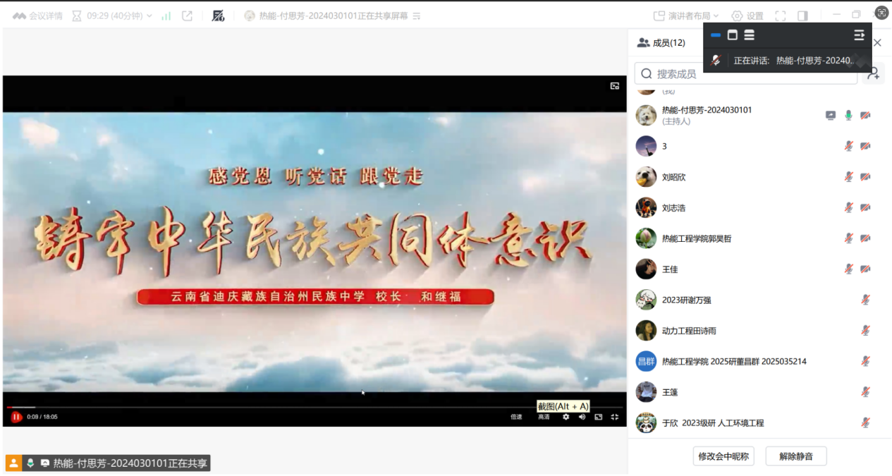 学习内容引发热烈讨论,与会党员结合自身体会,交流感悟。本次共学主题党课的开展,引导全体学生党员明确了新时代高校民族工作的方向路径与责任使命,深刻领悟了民族工作的时代要求。热能工程学院始终坚持将铸牢中华民族共同体意识融入学生思政教育全过程,学院将依托学生党支部常态化开展主题教育活动,持续加强学生党员队伍建设,着力锻造“信念坚、作风实、能力强”的骨干队伍,为学院高质量发展凝聚起师生同心奋进合力。