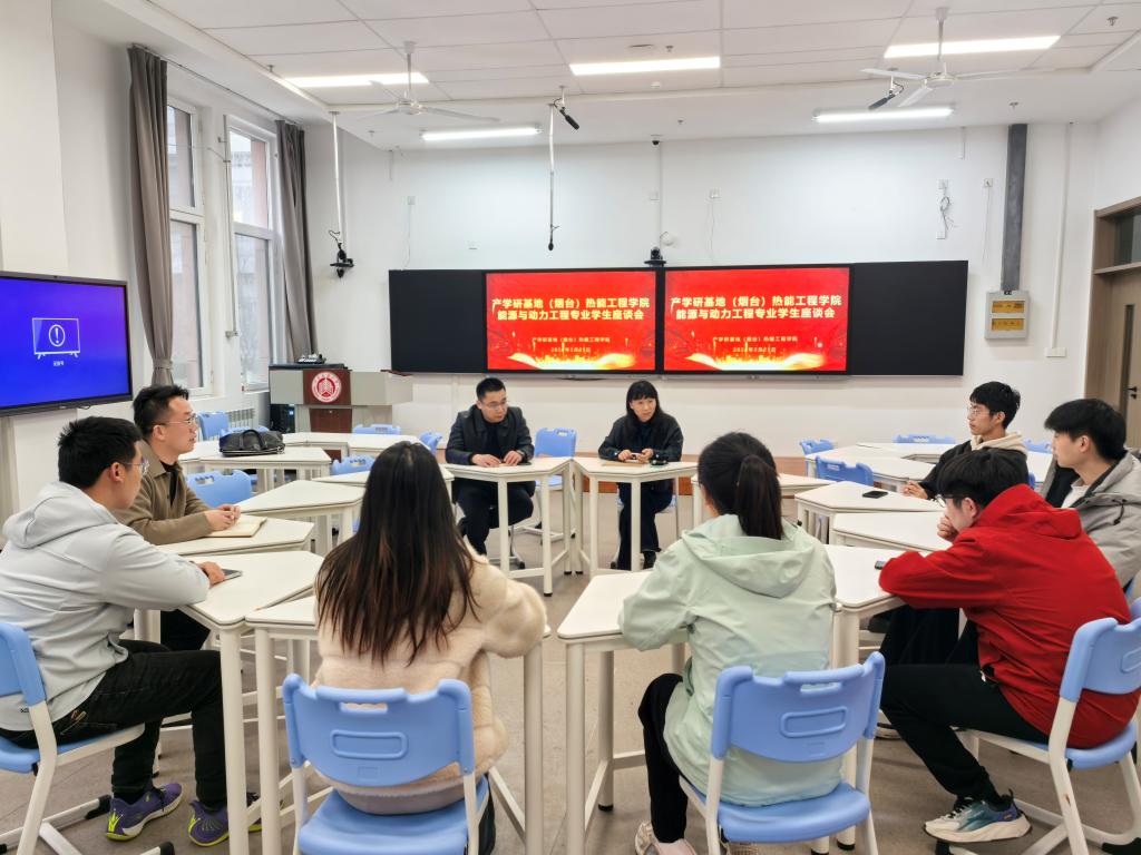为精准掌握未就业毕业生的求职现状与核心需求,切实做好毕业生就业帮扶工作,助力学子顺利实现就业、升学目标,3月25日下午,热能工程学院在产学研基地(烟台)XA106教室,召开能源与动力工程专业未就业毕业生座谈会。学院党委书记朱新筱、党委副书记蒋炜玮、就业辅导员王文龙、毕业班辅导员刘呈隆参加本次座谈会,与毕业生面对面交流,倾听学子心声,围绕考研调剂、求职就业等方面答疑解惑、指点方向。